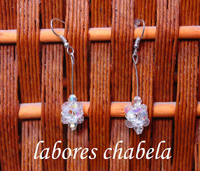 Amigos hoy la cosa va de pedientes, 4 tipos distintos que he aprendido en el curso de abalorios, estan hechos con tupis de Swarovski, los enganches son en dorado y plata, espero que les guste