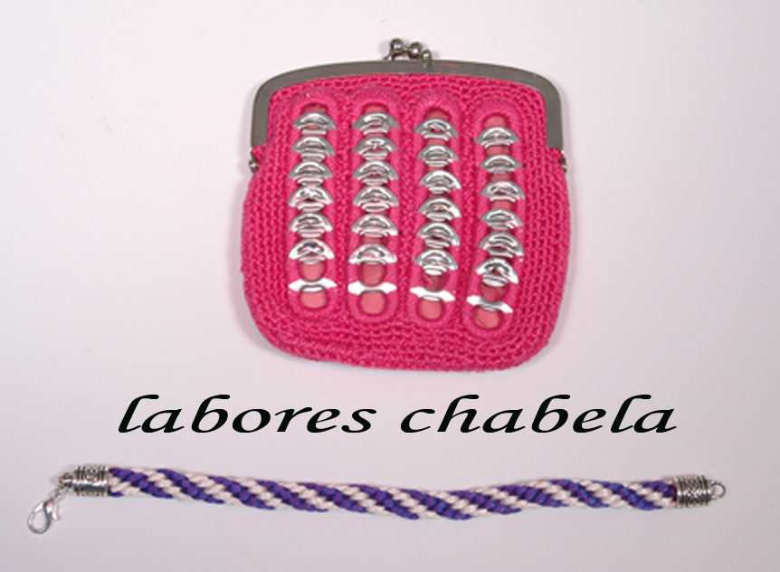 Estos bolsitos estan hechos a ganchillo con anillas de latas o lacre, todos forrados y con cremallera, las asas estan hechas en tres obciones diferentes, cadena, cola de raton tejida, y cuero fino, espero les guste