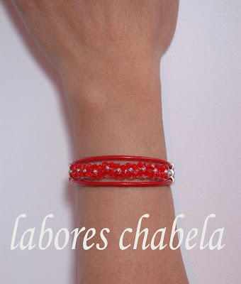 Que me gustan estas pulseras, eso se nota, esta pulsera tan bellas que creo nuestra amiga Angeles de quien lo diria, no me canso de hacerlas, es que en cualquier color quedan bellas, esta hecha con cuero rojo, tupis de cristal de swarouski del mismo color de cuero, facetadas y rocallas, espero que a su destinartaria le guste como a mi