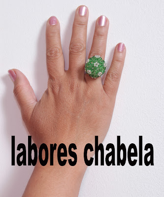les muestro dos anillos hechos con tupis de swarouski y rocallas, la verdad es que al blanco la foto no le hace ningun merito pero en directo es muy bonito , espero que les guste